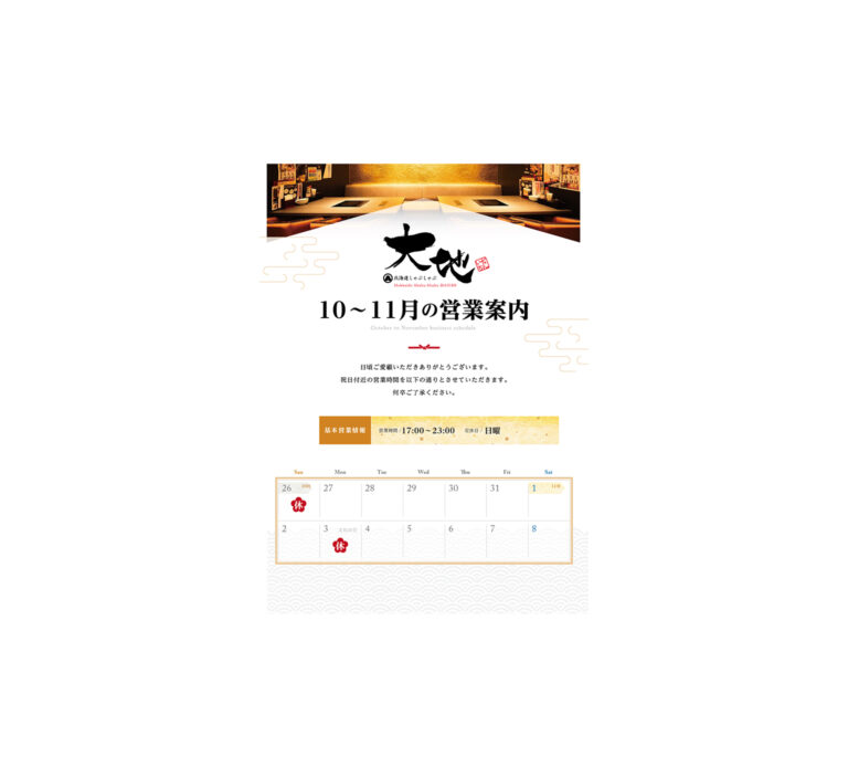 11月 祝日付近営業のお知らせ